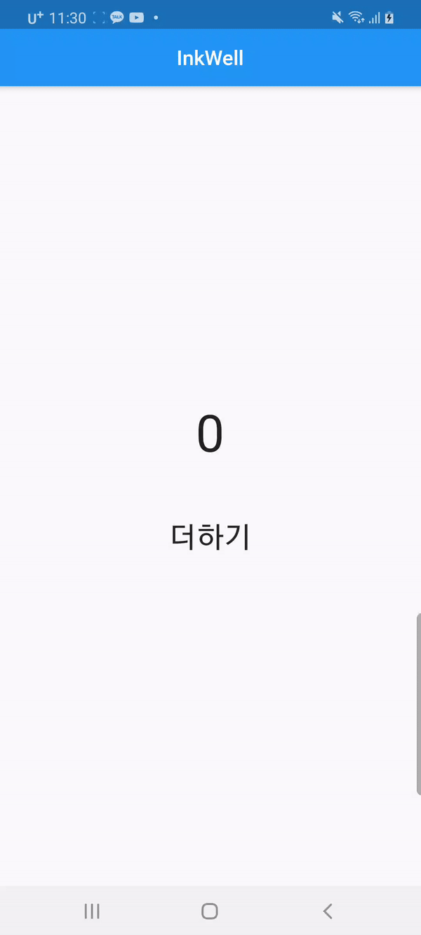 InkWell의 특징은 사용자의 동작을 감지했을 때 잉크가 퍼지는 듯한 애니메이션 효과를 보입니다.