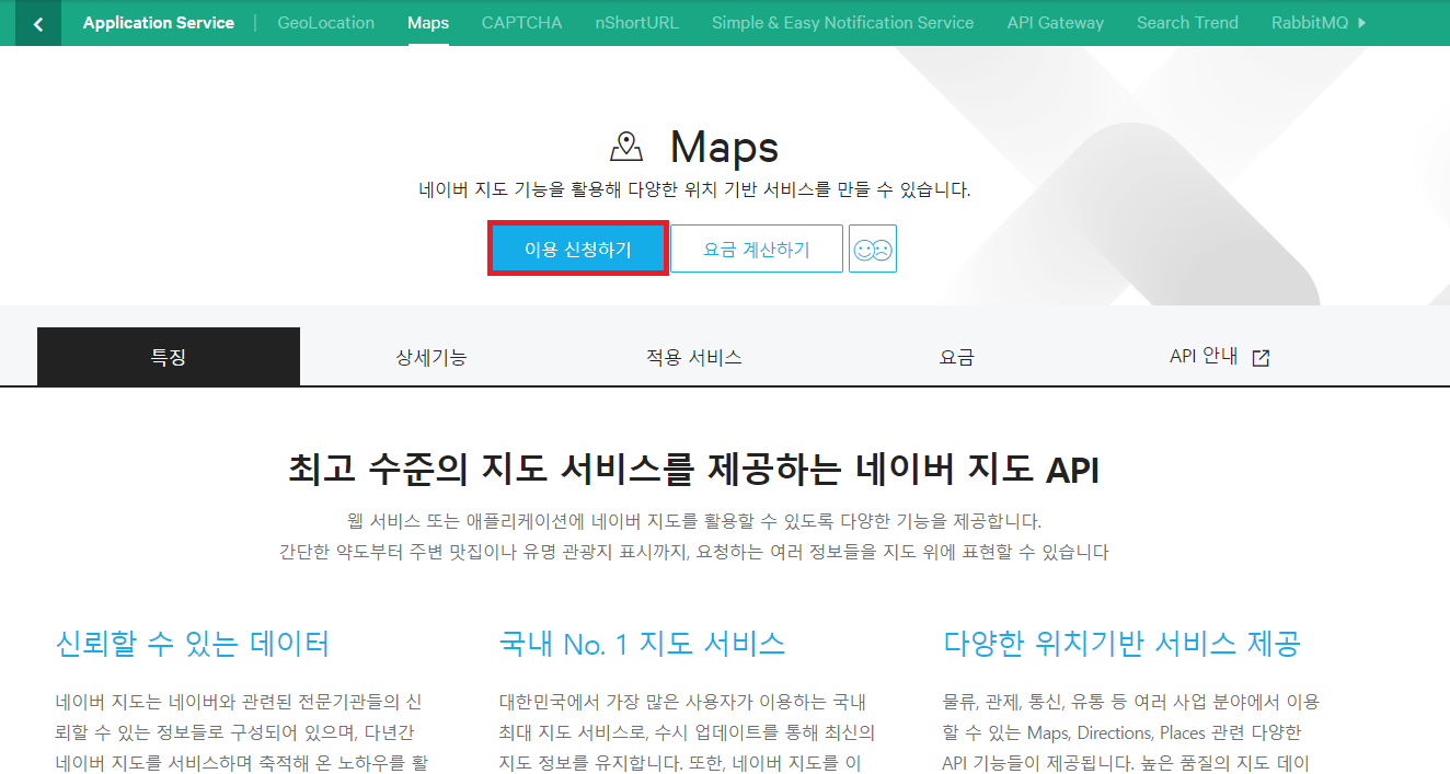 https://www.ncloud.com/product/applicationService/maps에 접속 후 로그인 해주세요