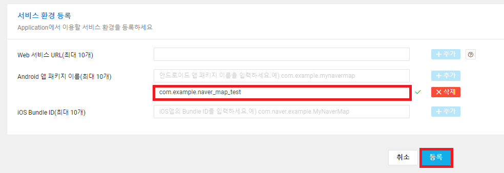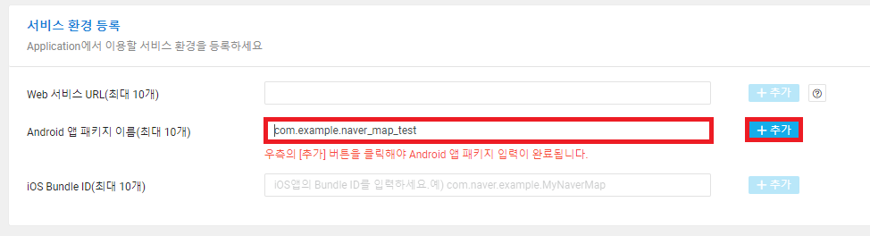 Android 앱 패키지 이름을 추가해주세요.