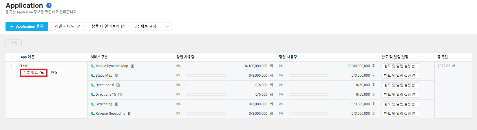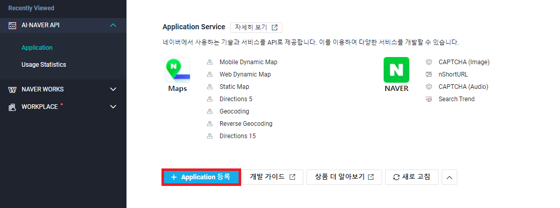 Application 등록 버튼을 클릭해주세요.
