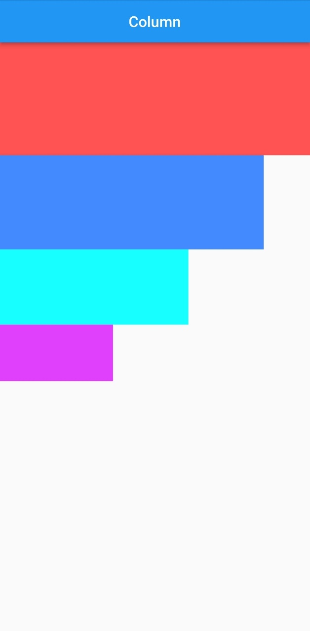 세로 방향으로 위젯을 배치하는 Column에 색과 크기가 다른 Container 4개가 들어 있습니다.